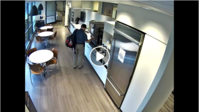 The Middlesex County Prosecutor's Office said Alexander Goldinsky, 57, was working as an independent contractor at a business in Woodbridge when a security camera recorded the incident.