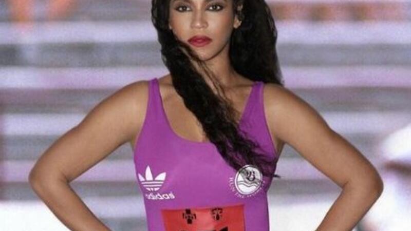 Beyoncé wore a pink leotard and dressed up as legendary athlete Florence Griffith–Joyner, who set a record in the 100-meter sprint in the 1988 Summer Olympics.