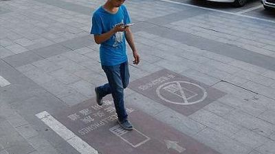 About a metre (3.3 feet) wide, words painted on the lane read 'designated pedestrian lane for the "head-down folks"', referring to the Chinese nickname for smartphone addicts.
