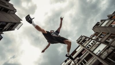 Parkour is a discipline which involves going through a complex environment in the fastest and most efficient way possible. It doesn't require any assistive equipment - only an individual's body. It involves running, swinging, vaulting, jumping, rolling and crawling. Usually practised in urban spaces, parkour is about seeing the surroundings in a new way and finding potential routes to take around the area. The discipline was created by French actor and stuntman David Belle and was popularised by Belle's appearance in the film District 13. Its practitioners are called traceurs, a French term which means 'to hurry up'.