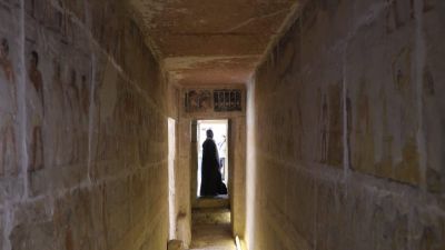 The tomb was unearthed by Egyptian archaeologist Zaki Saad and belonged to a great Pharaonic official named Mehu, a relative of the first king of the Sixth Dynasty, and his family. It features two rooms with walls covered with colorful, well-preserved inscriptions and artwork.