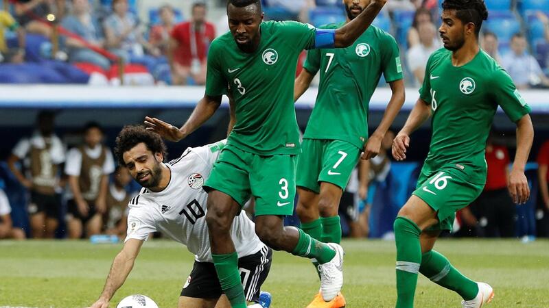 Mo. Salah and several Saudi players during Russia World Cup Game. (Twitter)
