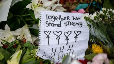 A handwritten note is displayed among flowers during a vigil in Christchurch (AFP)