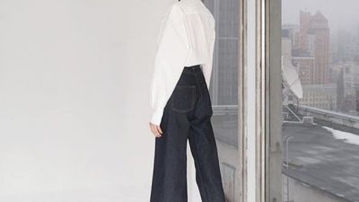 Kiev-based designer Ksenia who runs the brand with her husband Anton based the jeans on her best-selling cuts, a wide-leg jean and a high waist mom jean.