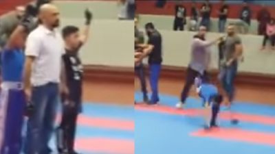 A man physically assaulted a 10-year-old child after the child defeated the man’s son in a kickboxing competition in the Kuwaiti city of Salmiya.