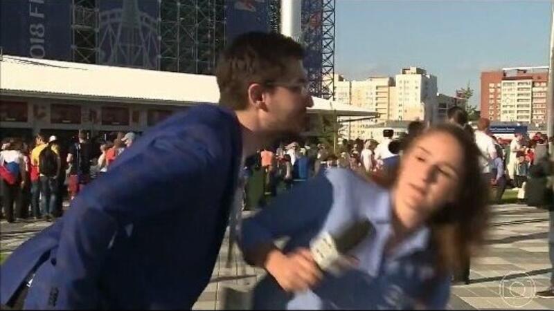 The reporter later revealed that it was the second time a fan had attempted to kiss her in Russia.