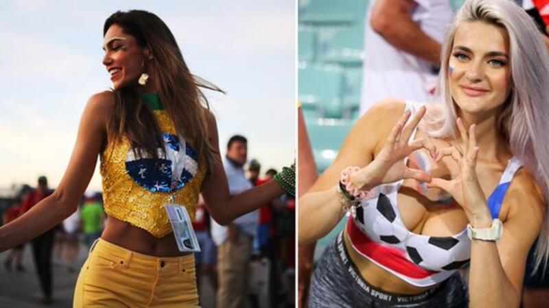 Among the glamorous fans attracting attention are former porn star Natalya Nemchinova, named as Russia’s hottest World Cup fan, along with wives and girlfriends of footballers playing for England, Croatia and France.
