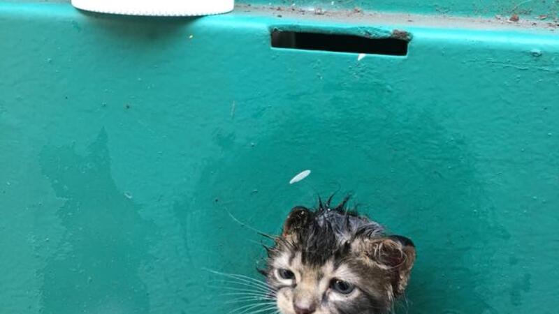 Firefighters in Florida rescued a kitten with its head stuck in a generator behind a local grocery store on Sunday.