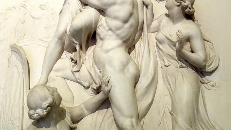 The statues represent Greek-Roman gods Aphrodite, a god of love, and Zeus, the supreme god of the Olympian pantheon, as well as muses sitting on thrones. The colossal figure of Aphrodite is made of Pentelic marble from the region of Athens, while the sculpture of Zeus was forged with marble from northern Greece, said Weber-Karyotakis.