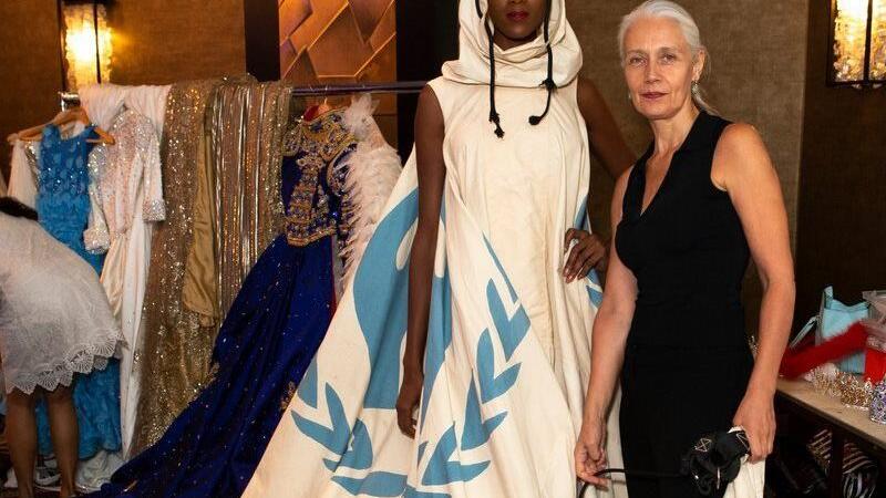 The show also featured a “Dress for Our Time” made by Professor Helen Storey, tailored from a decommissioned tent from the United Nations High Commissioner for Refugees as a reminder that the world needs to solve the growing refugees crisis.