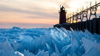 These ice shards have begun stacking up against each other, creating a gorgeous sight that could be seen from the pier at South Haven, Michigan on Tuesday.