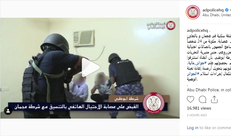 Abu Dhabi Police, in collaboration with Ajman Police, arrested a gang of 24 Asian nationals in an apartment in Ajman. They were suspected of defrauding people through phone scams. Abu Dhabi Police shared a video of the arrest on their official Instagram account.