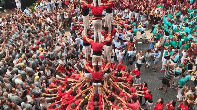 Nail-biting footage shows the moment a human tower collapses during a festival in Barcelona.