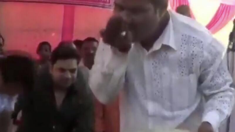 The video which has now gone viral, is being criticised on social media for the MP's inappropriate act. The incident took place when Dubey visited to his constituency Godda in Jharkhand to announce the construction of a bridge.