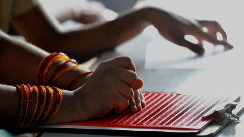 Bani Mustafa is one of dozens of visually disabled students who have been taking art classes for the past seven years at RAB.