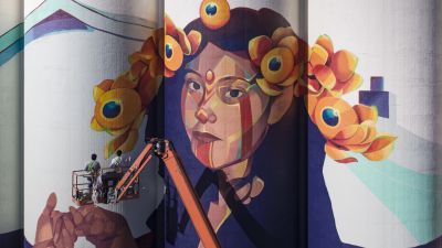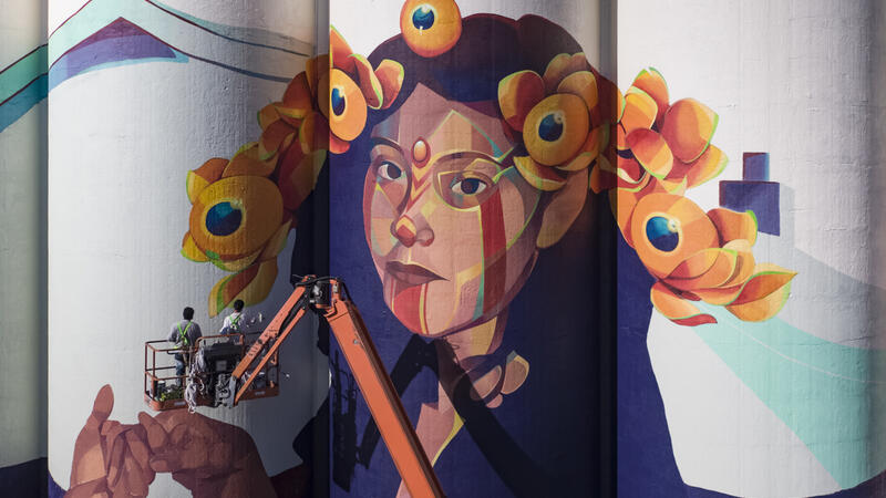 The mural, painted on the Beachner Grain elevator in Wichita, has involved work from more than 50 people during the past 18 months, organizers said.