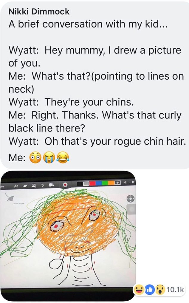 From a six-year-old who rustled up a rather questionable picture of her family snorkeling to a son who sketched his mother with 'rogue chin hair' included, these pictures will leave you in stitches.