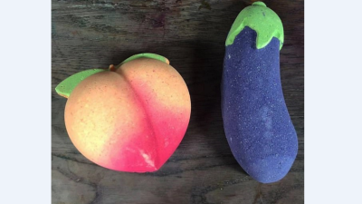 The brand shared a picture of two cheeky emoji bath bombs on Twitter - a peach and an aubergine - causing its followers to go into a frenzy.