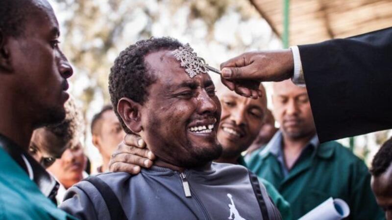 Some 150 people had been queuing up at a church outside the Ethiopian capital Addis Ababa in order to meet a local celebrity healer whom they believe would be able to free them from 'demons'.