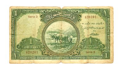 The signature of Ottoman Sultan Mehmet Resad can also be seen on the top-left of the bills, and "Giesecke & Devrient" – the print house that issued the bills – is on the bottom-left.