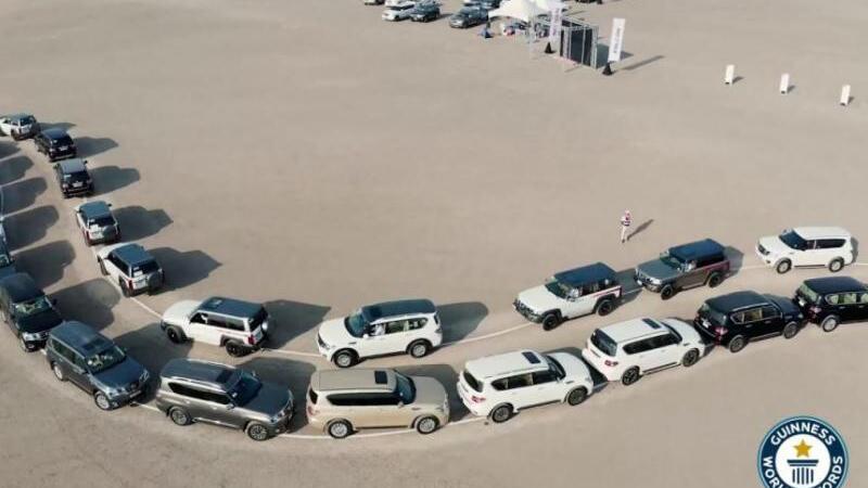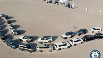 Guinness said the car company gathered 180 of its new Patrol Falcon 4x4s at the Dubai Rugby 7s stadium and they drove in the shape of a falcon under the leadership of Zimbabwean racing driver Axcil Jefferies.