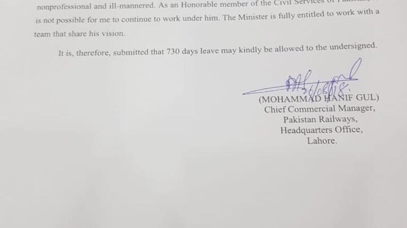 According to the viral application, Mohammad Hanif Gul, a Grade-20 officer, has applied for the nearly 2-year long leave on full pay (LFP) as it would be impossible for him to work under the new 'extremely unprofessional and ill-mannered' Railways Minister Sheikh Rasheed Ahmed.