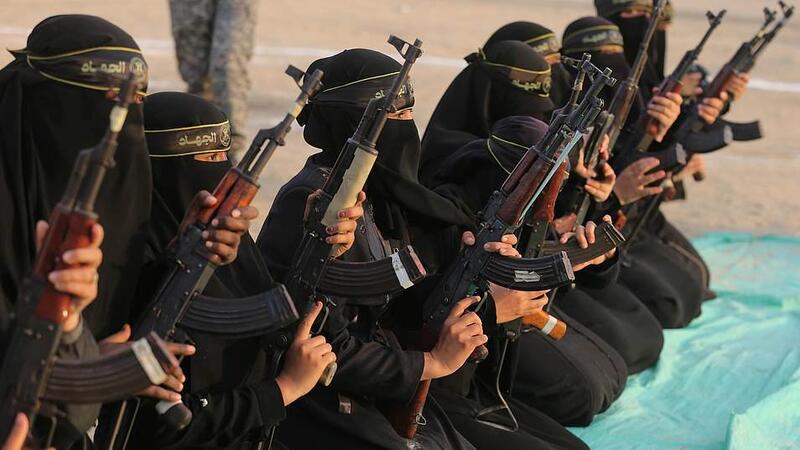 Palestine female guerilla fighters who are members of the al-Quds Brigades group showed off their combat skills in a military display on the Gaza Strip.