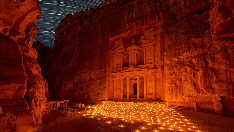 Petra Lit Up in Orange and Blue in Solidarity With Cancer Victims