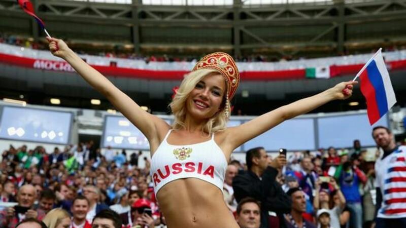 The super-fan has lit up the World Cup this year with her appearances at Russian matches, writhing in a tiny white top and waving her white, blue and red flag.