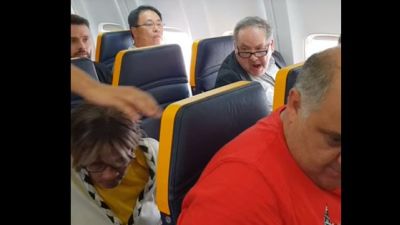 This is the shocking moment a passenger on a Ryanair flight unleashed a torrent of racist abuse at a 77-year-old woman sitting next to him - and she was moved.