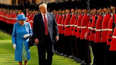 Trump turned his back on the monarch, marching ahead of her as they walked past the troops - in what was a serious breach of protocol.