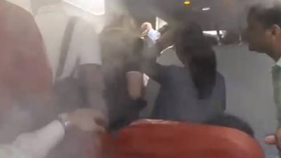 This is the shocking moment airline passengers start to vomit as their plane fills with mist, when the air conditioning was turned up to full power in a bid to get them out.
