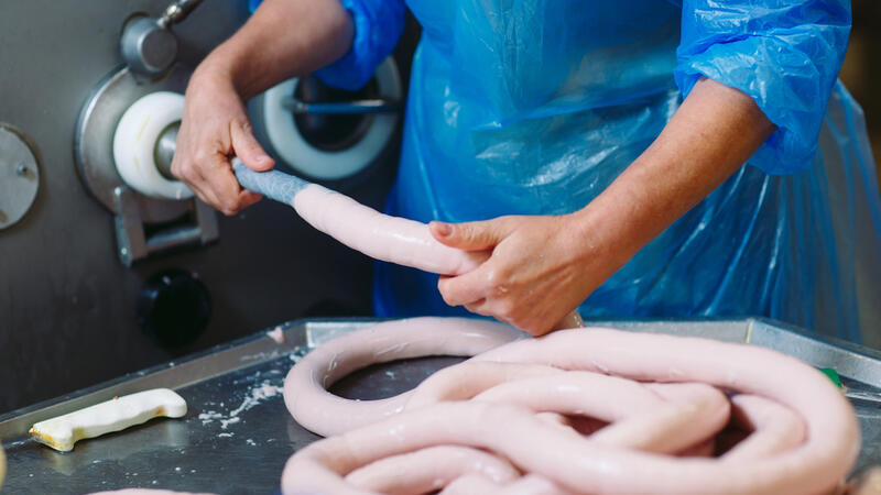 Butchers processing sausages at meat factory (Shutterstock/File Photo)