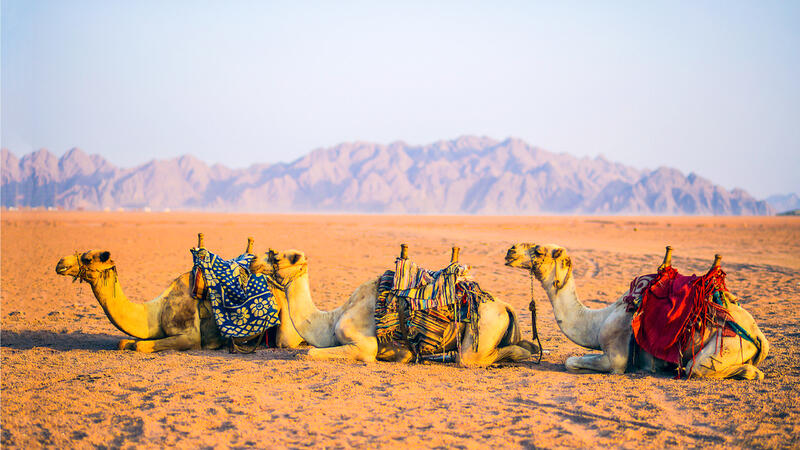Used mostly for desert transport, camels also provide Bedouin with milk, meat and hair to weave into clothing.