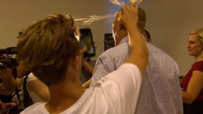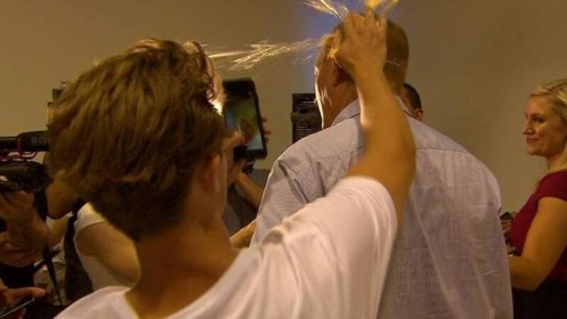 Collony threw an egg at Anning during a news conference in Melbourne. Then, Anning hit him in the face.