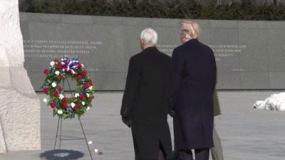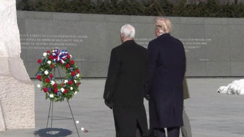Trump and Vice President Mike Pence participated in a moment of silence and wreath laying at King's imposing granite statue as reporters looked on.