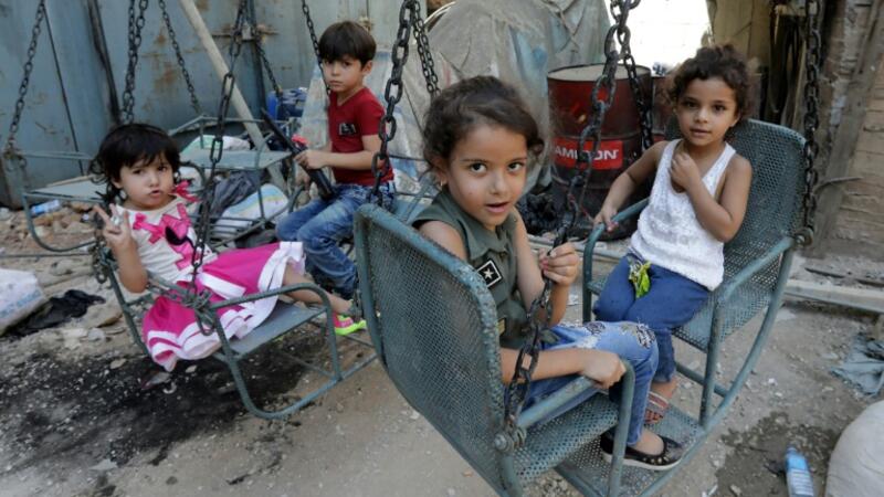 Syrian refugee children in Lebanon in a makeshift playground (AFP/File Photo)