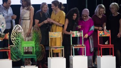 She posed for photos with Juliana Awada, the wife of Argentina's President Mauricio Macri, as the conference came to a close today.