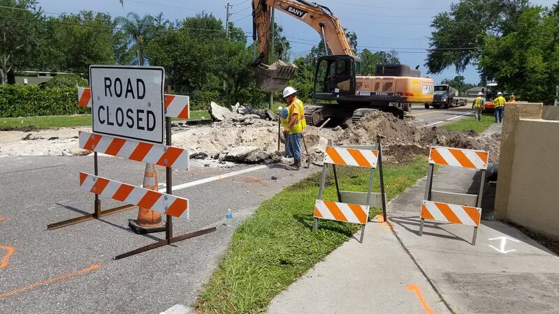 The Oviedo Historical Society said crews repairing the hole that opened on Sunday in State Road 434 in Seminole County started digging at the site and discovered the previously unknown road and structure.