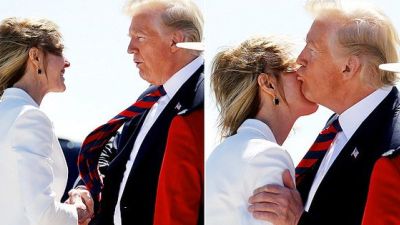 But Trump saved the best for last and greeted Craft with a side kiss-turned-disaster when he failed to peck her at all, and puckered at the air instead.
