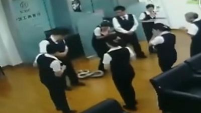 The video, recorded inside the Xin Cheng branch of the Industrial and Commercial Bank of China in Nanning, shows the python drop through the ceiling and landing on the floor next to a group of bank employees.