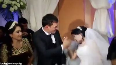 This is the moment a newlywed husband slapped his wife in front of shocked guests at a wedding ceremony.