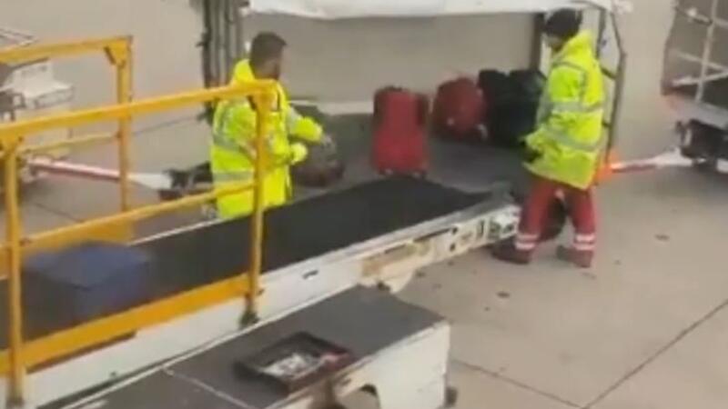 The footage shows the handler ruthlessly hurling bags after plane landed at the airport.