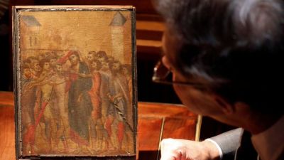 The 10-by-8-inch painting, Christ Mocked by Florentine painter Cimabue, aka Cenni di Pepo, was authenticated by experts after the woman who had it displayed in her kitchen decided to have it appraised earlier this year.