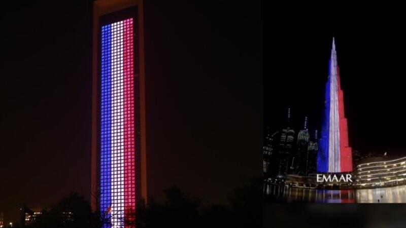 Dubai's Burj Khalifa on Tuesday night was illuminated with the French flag to commemorate France's Bastille Day.