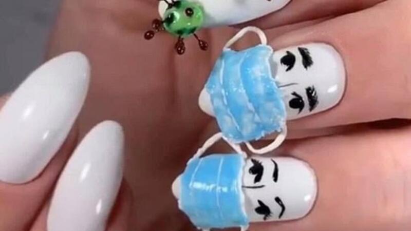 Some designs feature people wearing medical masks while others have painted their talons to resemble bottles of hand sanitiser.