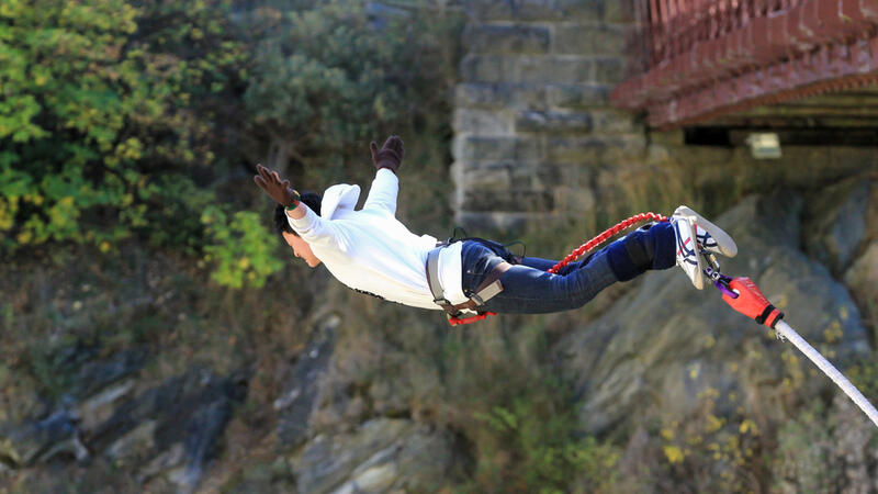 This is the horrifying moment a bungee jumper plunged to the ground breaking his spine after his harness broke.
