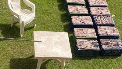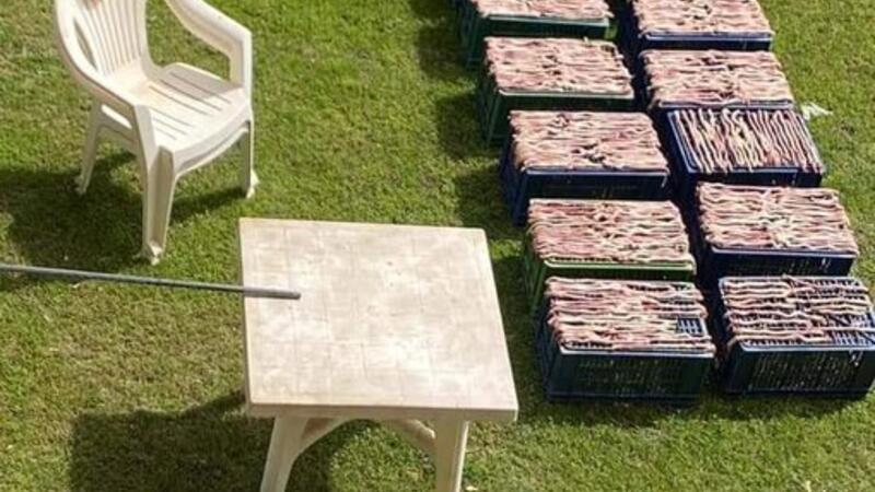 The concerned onlookers saw a large quantity of long slender bodies lying on tables under the sun.