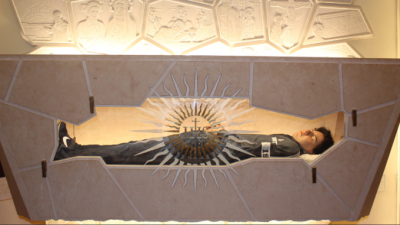 His preserved body was also on display in a glass case at the Basilica, where he requested to be buried because of his adoration of Saint Francis of Assisi, due to his work with the poor.