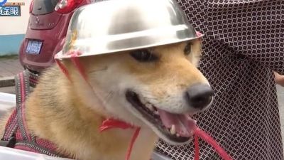 A Chinese pet owner has come up with a creative way to protect his pooch passenger while carrying it on his electronic scooter.